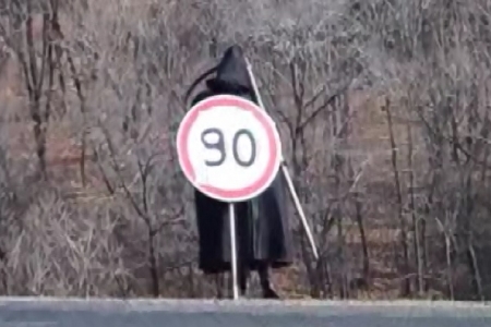 Campanie inedita de prevenire a accidentelor rutiere. Agentii de circulatie din Rusia au scos in strada moartea cu coasa pentru a indemna soferii sa nu accelereze. Desi si-au dat seama ca este vorba de un actor deghizat in personajul malefic, soferii au ramas socati de imaginea de pe carosabil.