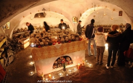 Daily Mail scrie in editia de astazi despre ceremonia macabra desfasurata de Paste la Manastirea Pasarea, de langa Bucuresti. Aici, intr-o camera la subsol, sunt pastrate craniile calugaritelor care au trait in respectivul lacas de cult.