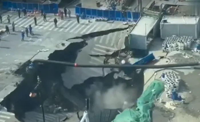 O scurgere de apă detectată cu o zi înainte ar fi contribuit la colaps. Groapa are o lățime între 10 și 20 de metri, iar marginile continuă să se surpe.