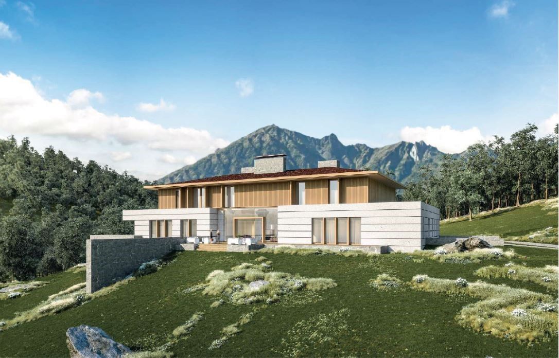 Clădirea principală se întinde pe aproximativ 3.000 de metri pătrați - echivalentul a jumătate de teren de fotbal. Hotelul și restaurantul vor ocupa 1.000 de metri pătrați, iar fiecare dintre cele trei vile va avea 700 de metri pătrați (fiecare va avea piscină, saună, sală de mese și patru dormitoare). Terenul unde se desfășoară construcția are vedere la Krasnaya Polyana și se învecinează cu o zonă naturală protejată unde construcțiile nu mai sunt permise.