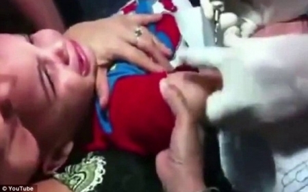 Un video socant, aparut luni pe internet, o arata pe o mama tinundu-si fiul care tipa sfasietor, in timp ce este tatuat.