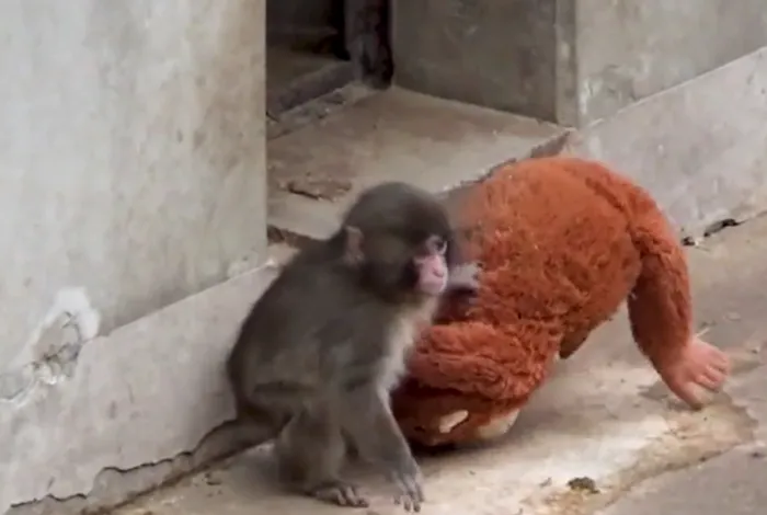 După săptămâni în care a stat separat puiul de macac trist și singur a primit un dar neașteptat din partea îngrijitorilor- o maimuță din pluș. Jucăria i-a adus o alinare și i-a devenit rapid cel mai bun prieten.