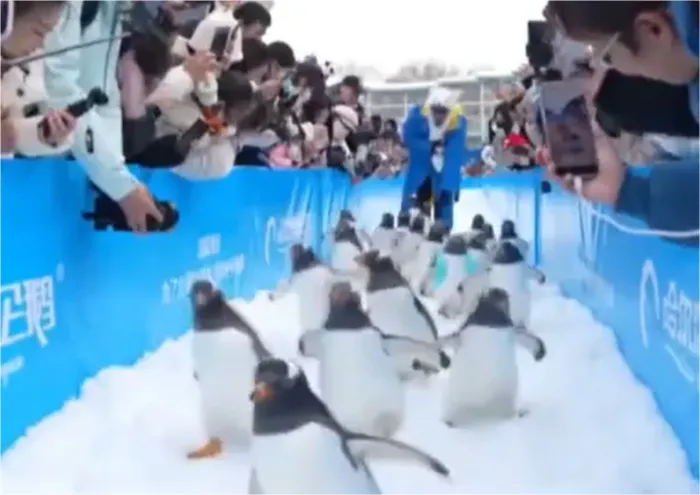 Imagini înduioșătoare vin din orașul Harbin, unde 100 de pinguini au mărșăluit împreună într-o paradă în aer liber. Păsările adorabile s-au adunat într-o zonă special amenajată, spre încântarea vizitatorilor, mai cu seamă – copiilor.