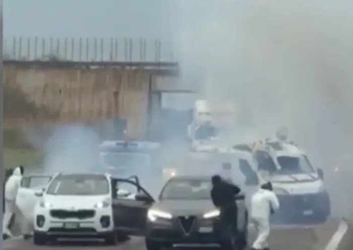 Un jaf ca în filme a avut loc ieri dimineață pe o autostradă din Italia. O mașină blindată de valori a fost atacată de un comando profesionist care a tras în carabinieri. Imaginile șocante au fost transmise în direct de martori pe rețelele de socializare.