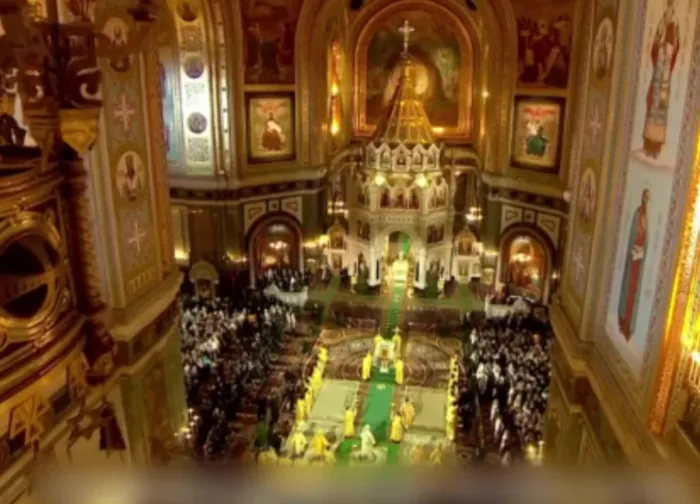 Patriarhul Kirill al Bisericii Ortodoxe Ruse a oficiat tradițional Liturghia la Catedrala Hristos Mântuitorul din Moscova.