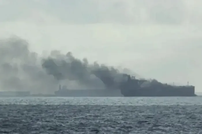 Nava Elbus este suspectată ca face parte din așa-numită „flotă fantomă” a Rusiei, pe care Moscova o folosește pentru ocolirea sancțiunilor. Imaginile publicate în mediul online sugerează că petrolierul a fost lovit în plin.