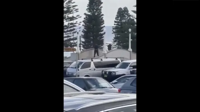 În aceste imagini se văd oameni care fug în panică cât mai departe de plaja Bondi din Sydney. Pe fundal se aud împușcături și țipete. La doar câțiva zeci de metri, doi bărbați îmbrăcați în negru au traversat podul spre plajă, trăgând cu armele în mulțime.