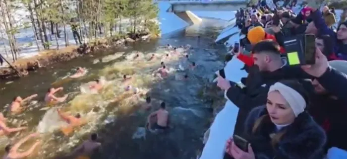 Tot acolo, zeci de oameni au intrat în apa înghețată, respectând tradiția scufundării de Bobotează.