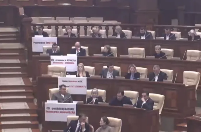 Mai mulți deputați din opoziție au venit astăzi la ședința Parlamentului cu pancarte în care au scris că „CSI - posibilități actuale. Denunțarea - pierderi reale”. Acțiunile vin după ce pe ordinea de zi au fost incluse proiectele de lege care prevăd denunțarea Acordului de constituire a Comunității Statelor Independente, întocmit la Minsk la 8 decembrie 1991, și a Protocolului la Acordul de constituire a Comunității Statelor Independente, întocmit la Alma-Ata la 21 decembrie 1991.