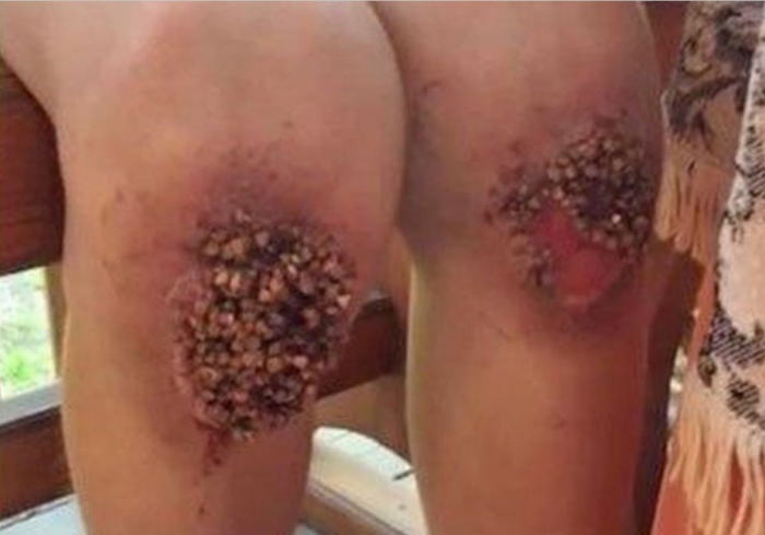 Dimineata, copilul a fost pus sa adune fiecare bob. La scoala, colegii i-au vazut des genunchii bandajati, dar copilul nu le-a spus exact ce a patit.