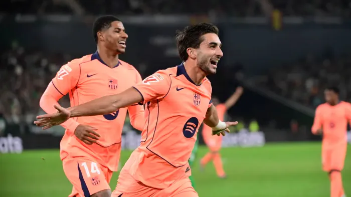 Real Betis a început mai bine partida, iar brazilianul Antony a punctat în minutul 7. Fără Dani Olmo și Fermin Lopez, antrenorul Barcelonei, Hansi Flick, l-a testat pe Lamine Yamal în rol de mijlocaș ofensiv. Un schimb de pase în flancul drept a dus la golul egalizator peste cinci minute. După mai puțin de un sfert de oră de la start, era deja 2 la 1 pentru Barcelona, Ferran Torres completându-și dubla cu o execuție acrobatică spectaculoasă.