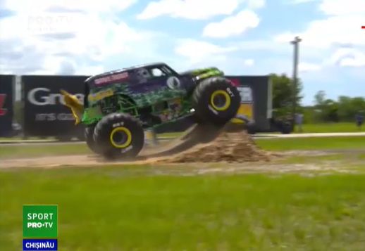 Un pilot american a sarit peste opt masini, in timp ce altul a atins inaltimea de 10 metri la volanul vehiculului urias. Alti sportivi s-au dat in spectacol pe doua roti, iar unul a reusit sa parcurga asa aproape 300 de metri. Totodata, a fost doborat si recordul sariturii in lungime, care acum este egal cu peste 72 de metri.