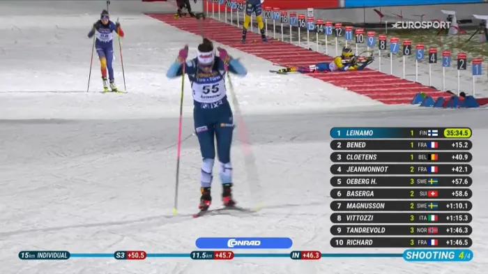 Italianca Dorothea Wierer a câştigat marţi proba individuală de 15 km, prima cursă individuală din sezonul Cupei Mondiale de biatlon, la Ostersund, în Suedia, fiind urmată pe podium de Sonja Leinamo (Finlanda) şi Camille Bened (Franţa), scrie eurosport.ro
