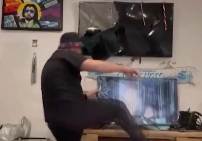 Francezul a lovit cu piciorul în televizor și l-a distrus. De fapt, acesta este un blogger, cu peste două milioane de abonați pe YouTube. Microbistul a devenit renumit acum mulți ani, după ce s-a viralizat un filmuleț în care își distruge televizorul.