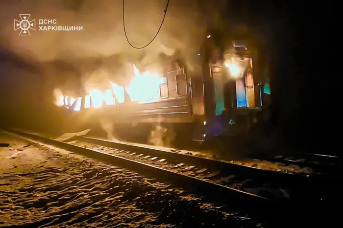 Trenul de pasageri circula de la Chop, un oraș aflat lângă granița de vest a Ucrainei cu Ungaria și Slovacia, către orașul Barvinkove. Fotografiile și imaginile video publicate în mediul online suprind cel puțin două vagoane în flăcări lângă o cale ferată acoperită de zăpadă.