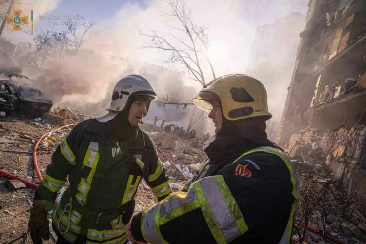 Un om a murit, 12 au fost raniti si alti 98 au fost evacuati dintr-un bloc din Kiev, lovit de ramasitele unei rachete ruse avariate, informeaza pagina de Facebook a Serviciului pentru Situatii de Urgenta din Ucraina, care publica si mai multe imagini de la locul tragediei.